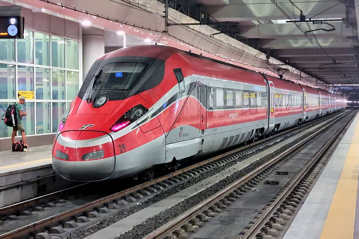 Trenitalia EMU-8 ETR.400-29 Frecciarossa 1000 at the underground Bologna AV (Alta Velocità) Station. 30/07/2022.