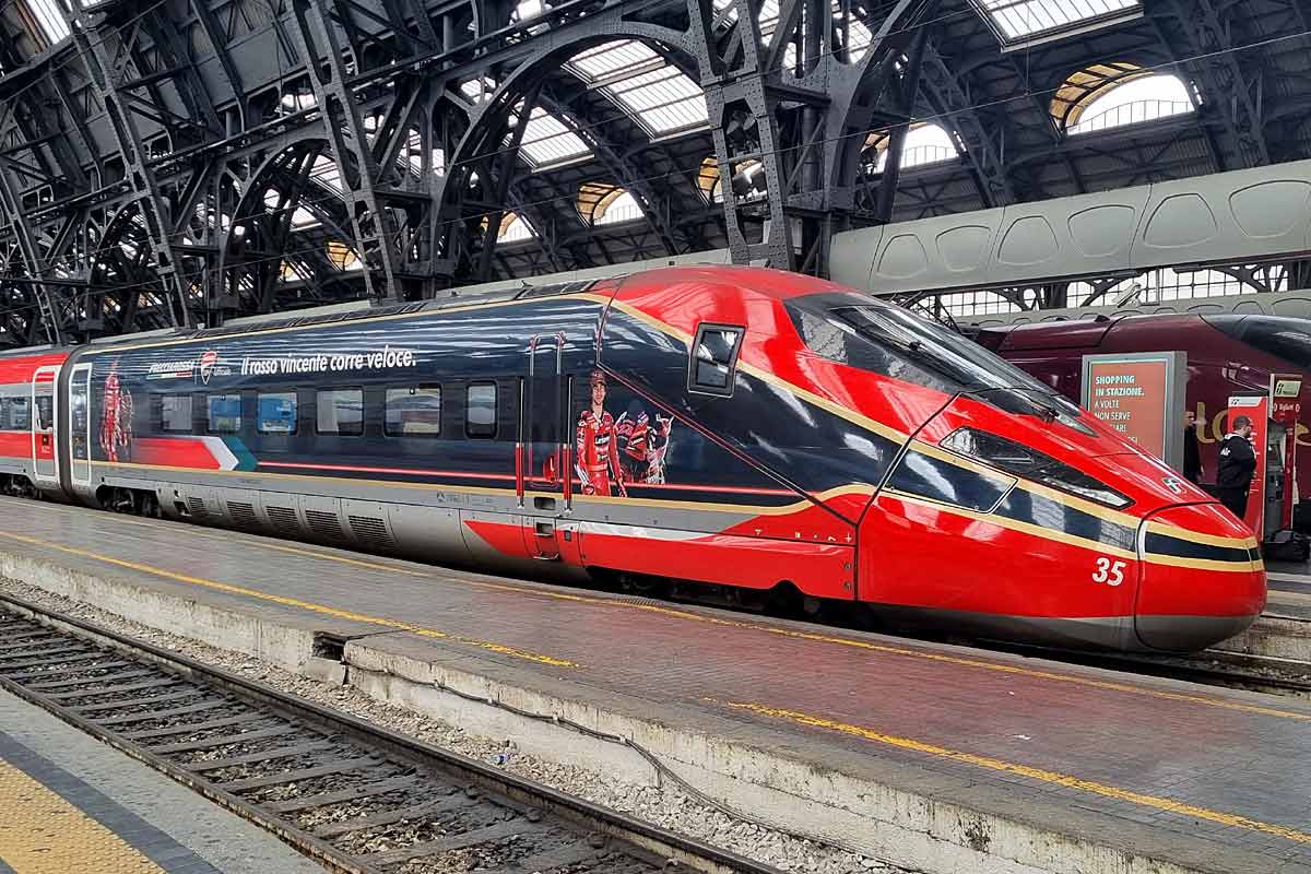 Trenitalia ETR.400-035 "Frecciarossa 1000" in special DUCATI promotional livery at Milano Centrale Station. 16/05/2023