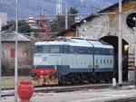 Locomotiva elettrica E636.080, con verniciatura sperimentale Turchese-Blu' Oriente, ripresa nella stazione di Piacenza.