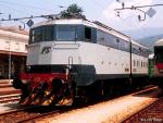 Luino (Varese) - Italia - Giugno 1989 Locomotore elettrico FS E 636 serie 080. Famoso per la livrea sperimentale in seguito mai applicata agli altri rotabili della stessa famiglia. Photo and scan Silvio Assi - EurostarItalia |