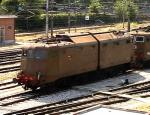 Electric locomotive class E.636 in brown livery in Padova/Italy station.