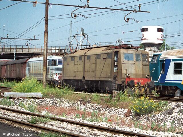 One E636 in its last trip to Livorno. On that train in september 2000 there were 6 os such locomotives, scattered around the train since probably they had no working brakes. Photo by Leonardo Boselli leo@dicea.unifi.it |