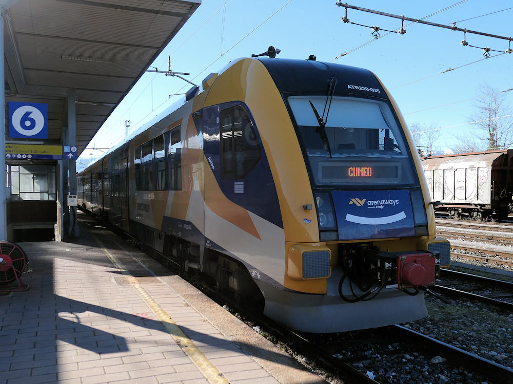 Arenaways - Italy Since 2025 Arenaways operates local trains on the modernised Savigliano-Cuneo regional railway line. Trainset ATR220-035 built by Pesa in Poland is seen in Cuneo after arrival from Savigliano. Cuneo, 29-12-2025 Photo by Marco van Uden |