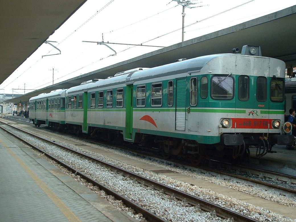 Automotrice ALn 668 1014 della linea Ferrara-Codigoro (sempre FER) provvisoriamente trasferita sulla linea di Bologna causa mancanza materiale rotabile DMU ALn 668 1014, at Roveri depot, near Bologna, Italy. This units came from Ferrara-Codigoro (ex FP now FER). Digital photo by Alessio Pedretti, Milano, Italy - E-Mail: pedretti.alessio@tiscalinet.it |