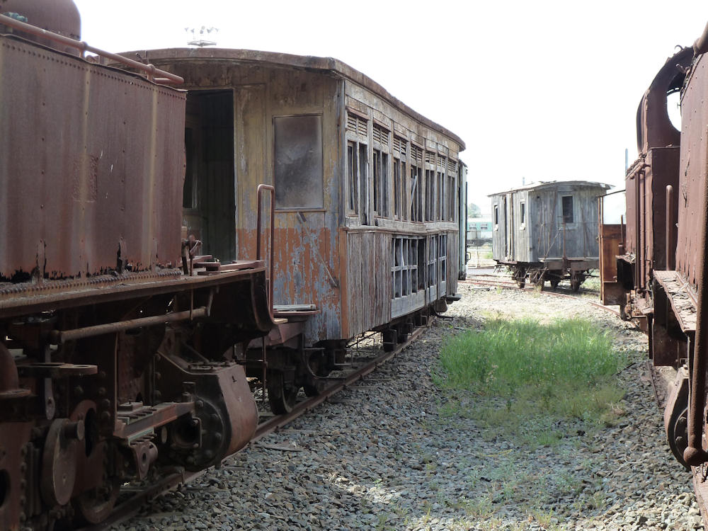 ARST-FdS - Italy (Sardinia) Historic wooden coaches in very bad shape, outdoors from the Sardinian narrow gauge museum. Monserrato, 08-08-2013 Digital photo by Marco van Uden |