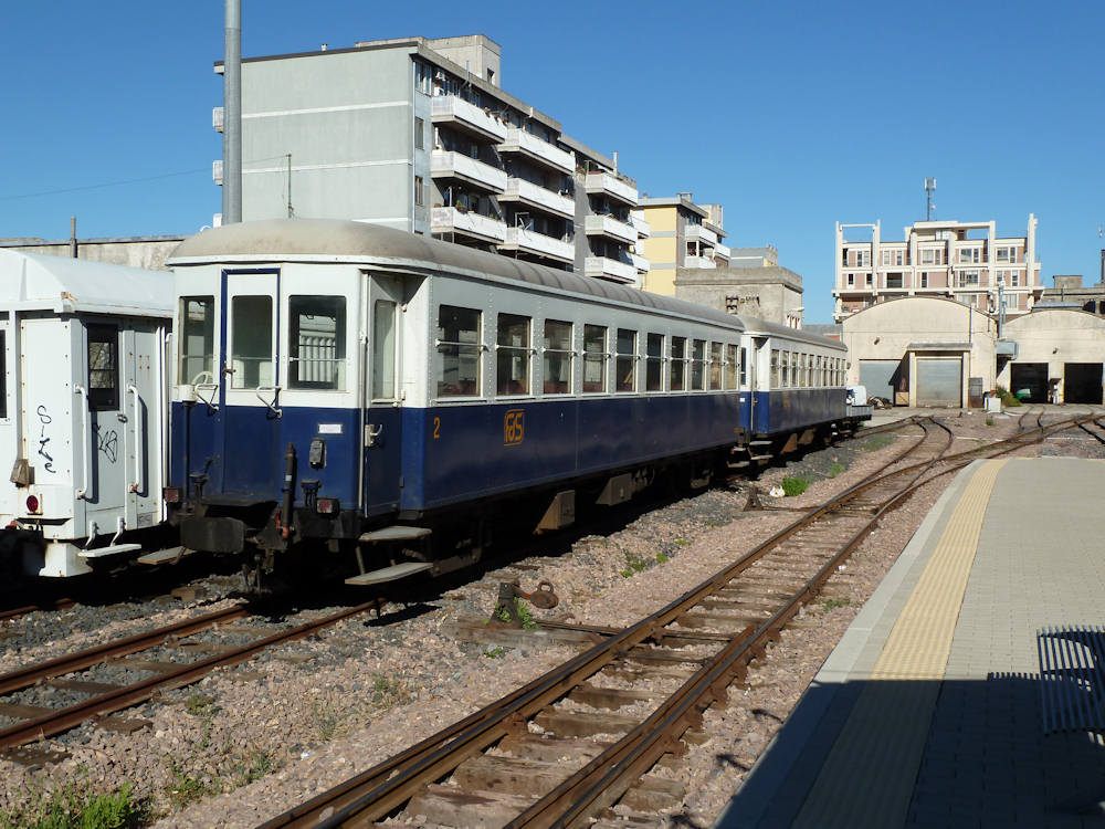 ARST-FdS - Italy (Sardinia) Narrow gauge passenger coach V2D 944 plus an unidentified second stabled at Macomer. Macomer, 05-08-2013 Digital photo by Marco van Uden |