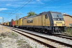 Medway Italia electric loco 483 318 (NVR Nr. 91 83 2483 318-8 I-AKIEM) with a container train at San Giorgio di Piano BO Station. 19/07/2022.