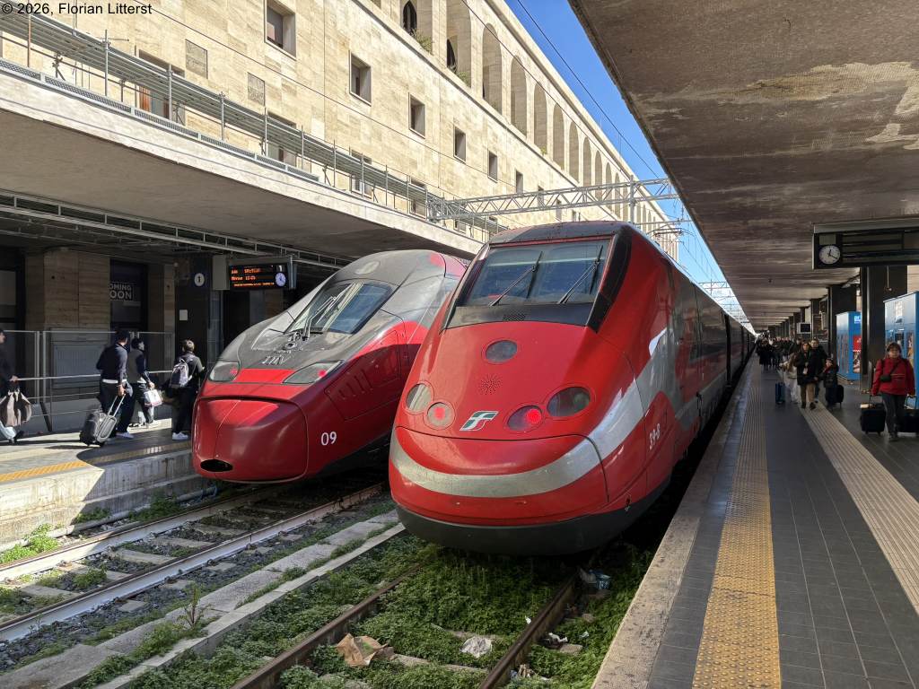 ntv ETR 675 No. 9 and FS ETR 500 No. 39 "Frecciarossa" at Roma-Termini, 2026-02-21