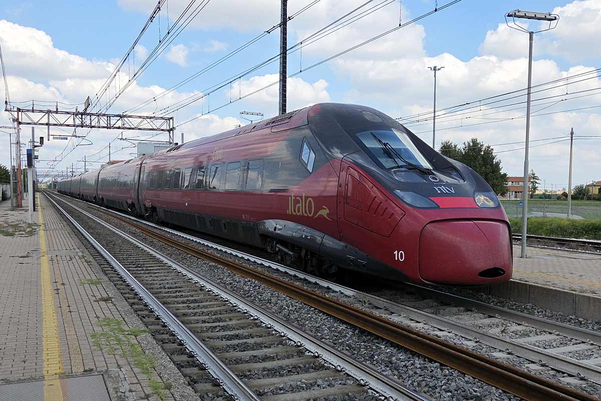 NTV (.Italo) - Italy High-speed trainset number 10 of class ETR.675 leaves Trieste Airport station, on its way south. Trieste Airport, 19-04-2025 Photo by Marco van Uden |