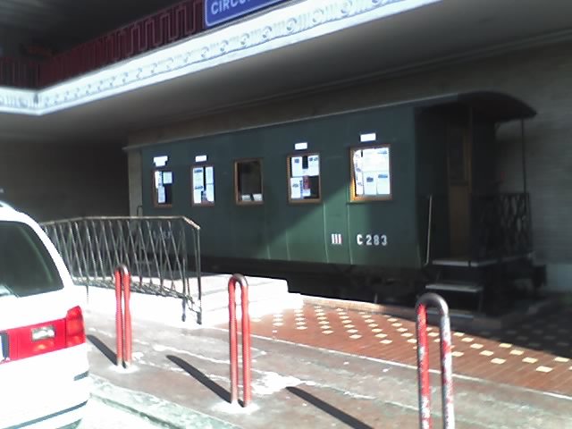 Una antidiluviana carrozza di terza classe monumentizzata all'esterno della stazione, utilizzata come ufficio informazioni.