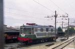 Ferrovia Elettrica Trento-Male CP1 was stored in the siding at Mezzocorona Borgata Station on Sunday September 16th, 2001. It was sandwiched between 2 small freight cars and the balating work cars. The FTM website (in Italian) mentions that this unit was used in conjunction with ET007 & ET008 in the mid 1970s. It originally came from the Ferrovia Mantova-Peschiera and was regauged from standard gauge to metre gauge.