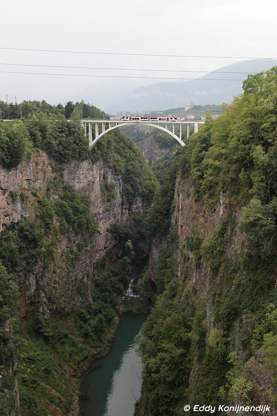 The unique TT/FETM loco is operating a single wagon freight, near Cles.