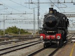 Treno storico Torino-Cuneo in uscita dalla stazione di Cuneo.