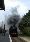 Linea Empoli-Siena, stazione di Poggibonsi, in occasione del 151° anniversario Empoli-Siena Uno dei momenti più 'magici': la 'svaporata' della intramontabile macchina a vapore, che pure coglie di sorpresa un giovanissimo Photo Massimo Becacci (treni@valdelsa.net) |