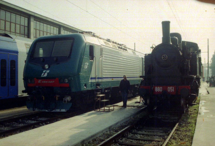 Milano - 13/10/2001 Train exhibit. Old and new: steam locomotive 880 051 near E464 037 Photo by Alessandro Storti Gajani (alex@cerbero.elet.polimi.it) |