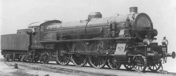 Locomotiva a vapore Gr. 691 delle FS, usata per treni veloci fino a 130 km/h.