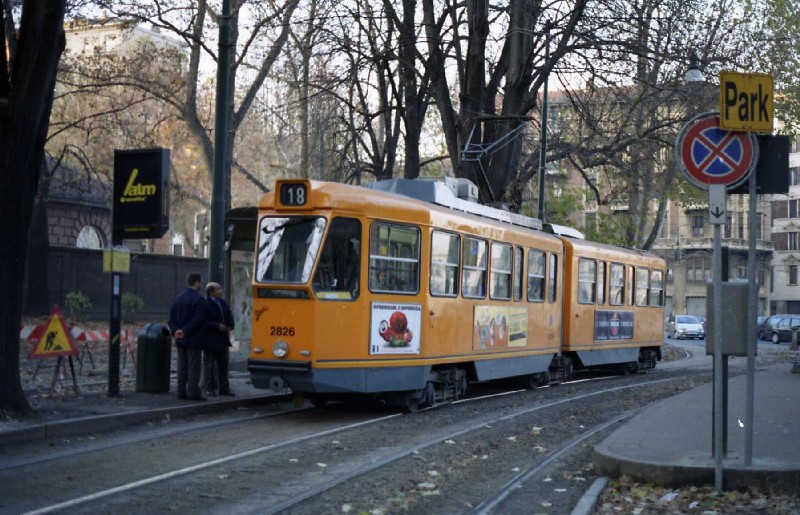 Tram 2850 in "Piazza Statuto" near Porta Susa railway station in service on line 16. Photo by Alessio Pedretti during "Act fan trip" 28-07-2002 |
