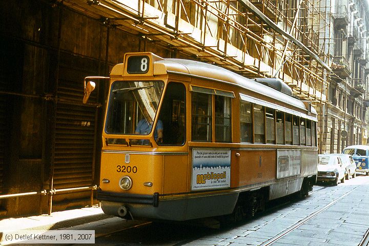 Straßenbahn Turin (Torino) - 3208 Triebwagen 3208 im Jahr 1981.