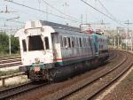 FS Track Inspection Car "Euclide". I was riding the 10:08 Venezia S Lucia to Adria train of the FAM on Tuesday morning September 18th, 2001. Approaching Mestre station we were stopped by a red signal and I saw this car hauled by E444.045 stopped by a red on the other track.