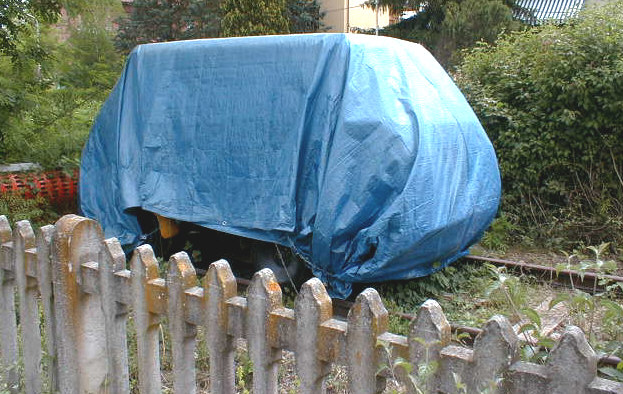 00 - 15 - 10 Linea Poggibonsi-Colle val d'Elsa Sotto questo telone, una associazione di appassionati conserva una draisina rimessa in funzione dal DL di Siena. Fotografia Digitale: Epson PhotoCD 700 by Massimo Becacci (treni@valdelsa.net) |