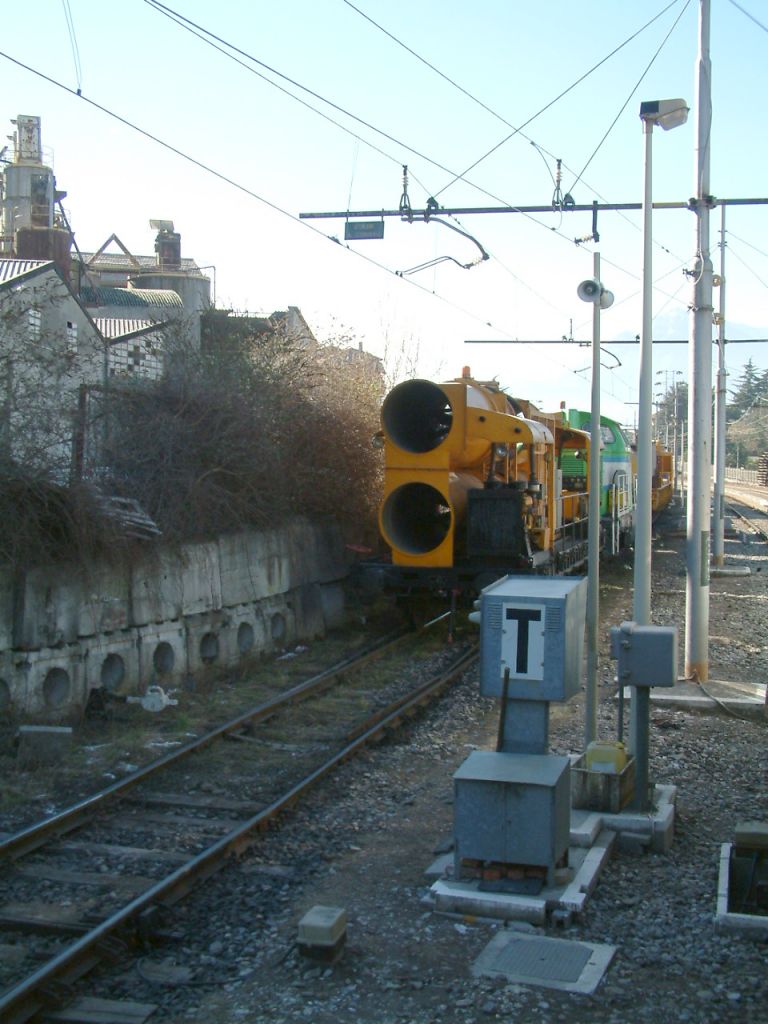 Alcuni rotabili Sirti S.p.A. a deposito sull'asta di manovra della nuova stazione AV Napoli-Afragola.