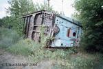 The former narrow-gauge (750 mm) passenger car of children railway of a name Kamzin in Pavlodar, Kazakhstan, July 4 2004. Photo and scan by Utkin Mikhail, Alma-Ata, Kazakhstan, pechnik@yandex.ru |