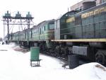 Diesel locomotive 2M62 arrives to the station of Marijampole. (Lithuanian railways company LG) gauge 1520 mm.