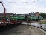 LG - Lithuania Diesel locomotive M62-1153 leaves the turntable, while 2M62U-0358 watches. Vilnius, 18-07-2005 Digital photo by Marco van Uden |