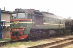 First type M62 locomotives appeared in Lithuania in the year 1971 replacing the freight service steam locomotives. M62 locomotives became the first mainline locomotives in Lithuania. They are used at present in lower trafic density lines for traction of freight trains up to 2500 tons. In addition, they are used as traction for maintenance trains and machinery in track maintenance operations. Although M62 are freight locomotives, they can be used in passenger train service up to 100 km/hr and are presently used for passenger trains No. 27/28 Vilnius-Warsaw ( up to the border station of Mockava) and passenger train No. 471/472-480 Vilnius-Siauliai-Mazeikiai. When required, they are also used in other passenger routes. Lithuanian Railways own (72) M62 locomotives, which are based in Vilnius and Radviliskis locomotive depots. Foto: Alexander Malinovski. 06/1997