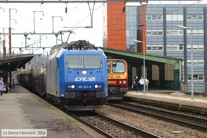 CFL - 185523-8 Lok 185523-8 durchfährt den Bahnhof Bettembourg am 25. September 2004.