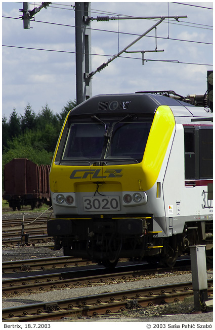| CFL HLE 3020 is waiting at Liege-Guillemins station , while doing the IR 115 train to Luxembourg (L).Liege-Guillemins , 09/04/2004. Photo ©2004 Denis Verheyden (msts_2@hotmail.com).Photo taken with a Canon Powershot A70 digital Camera. |