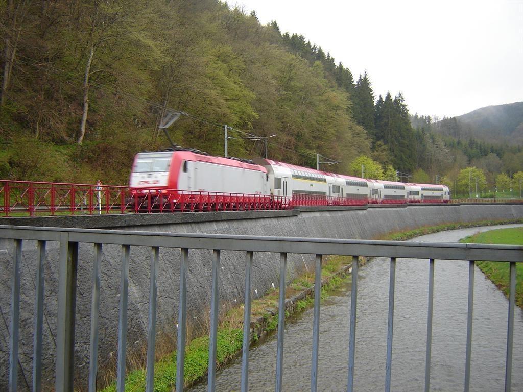 Sunday 30 April 2006 at 16h45, Regionalbahn service 3215 Luxembourg - Wiltz has left Kautenbach in direction of Wiltz, class 4000 with four doubledeck coaches