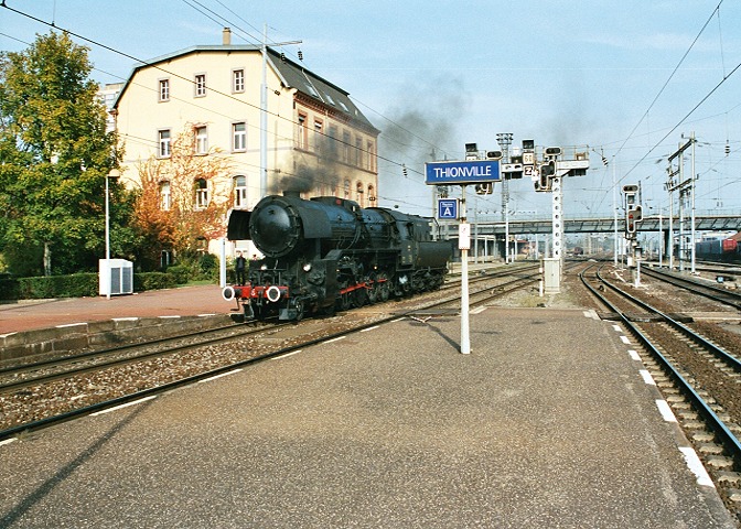 The locomotive of the "Musel-Nostalgie-Express" that runs every year in october. Routing is Luxembourg-Apach-Longuyon-Longwy-Esch/Alzette-Luxembourg. If you like you can descend in Sierck-les-bains and take the ship back to Wasserbillig having dinner on board. Or you take the ship in Wasserbillig, having lunch on board and take the train back to Luxembourg. The third option you have is for real train enthusiasts only: staying on the train the whole day.