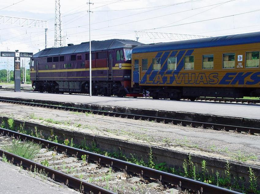 | TEP70 in "Latvijas Ekspresis" livery. Vagonu parks, Riga ,Latvia 2006 |