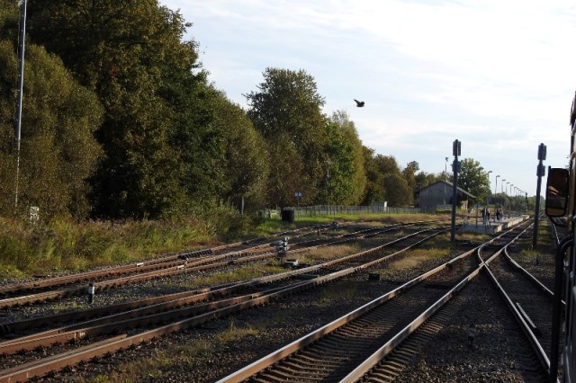 Saldus railway station,96 km from Liepaja,127 km from Riga.February 2004