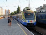 A DMU of type D1M of CFR (Calea Ferata din Moldova / Moldovian Railways) at central railway station Odessa , using an International train with number 642 to Chisinau.