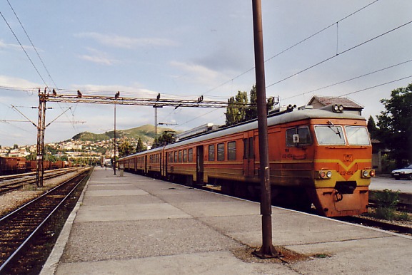MZ EMU 412-056 at Skopje Main Station, March 2000. Photo by Slobodan Ilic, scan by Frank Valoczy |
