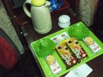 Food provided in the first class sleeping car of the Tehran-Tabriz nighttrain, Iran.17.08.2012.
