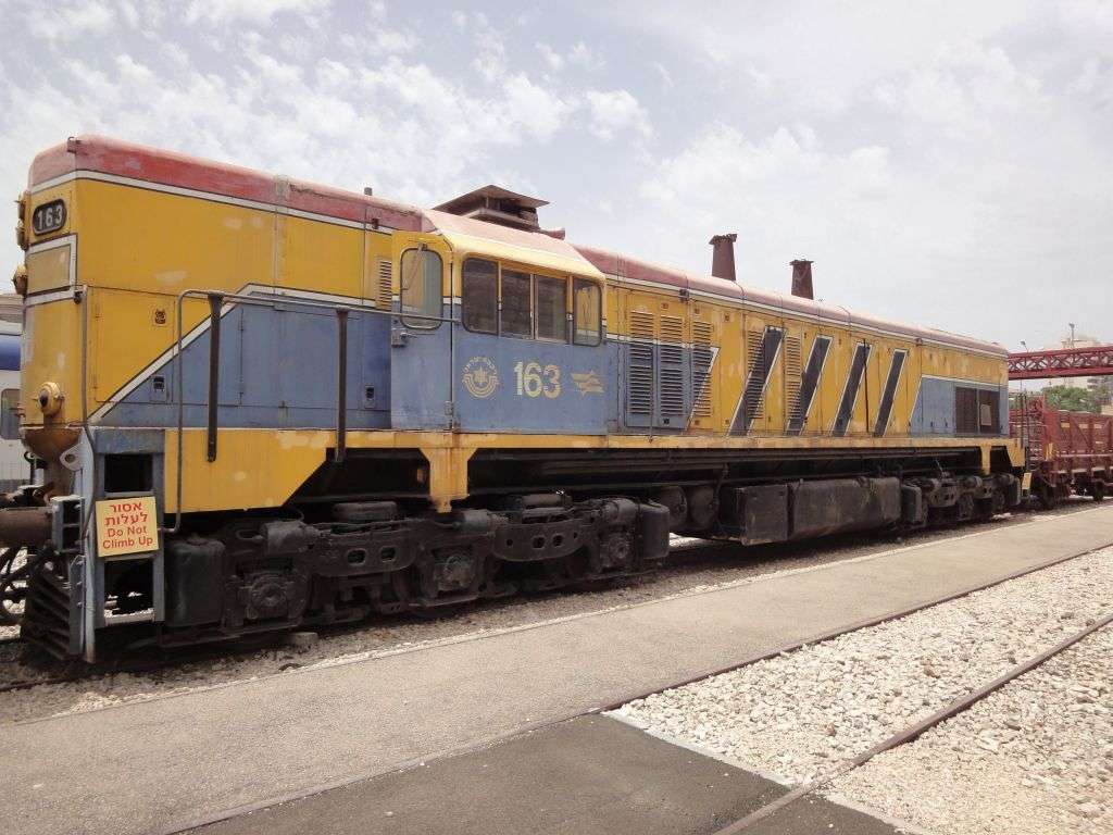 Beersheba station is the gate to the south of Israel. Heavy freight trains pass here from the Oron phosphates mines deep in the Negev desert, normally worked by a tandem of ISR’s largest diesels. ISR #163 (built 1961), however, is an aging lady. Exposed to the demanding ascents of the Beersheba–Oron line, it may breathe out its last. On the 05 April 1990, #163 has little to do but await the arrival of a long freight train from Lod or Ashdod, after which it took off in the opposite direction, to the north. This fine diesel is no longer active.