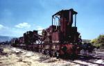 A lonesome pair of Palestine Railways Cowans steam cranes stands at Haifa-Kishon depot in 1997. One of the cranes is now kept at the ISR museum in Haifa. Mount Carmel and western Haifa form the background in this photo.