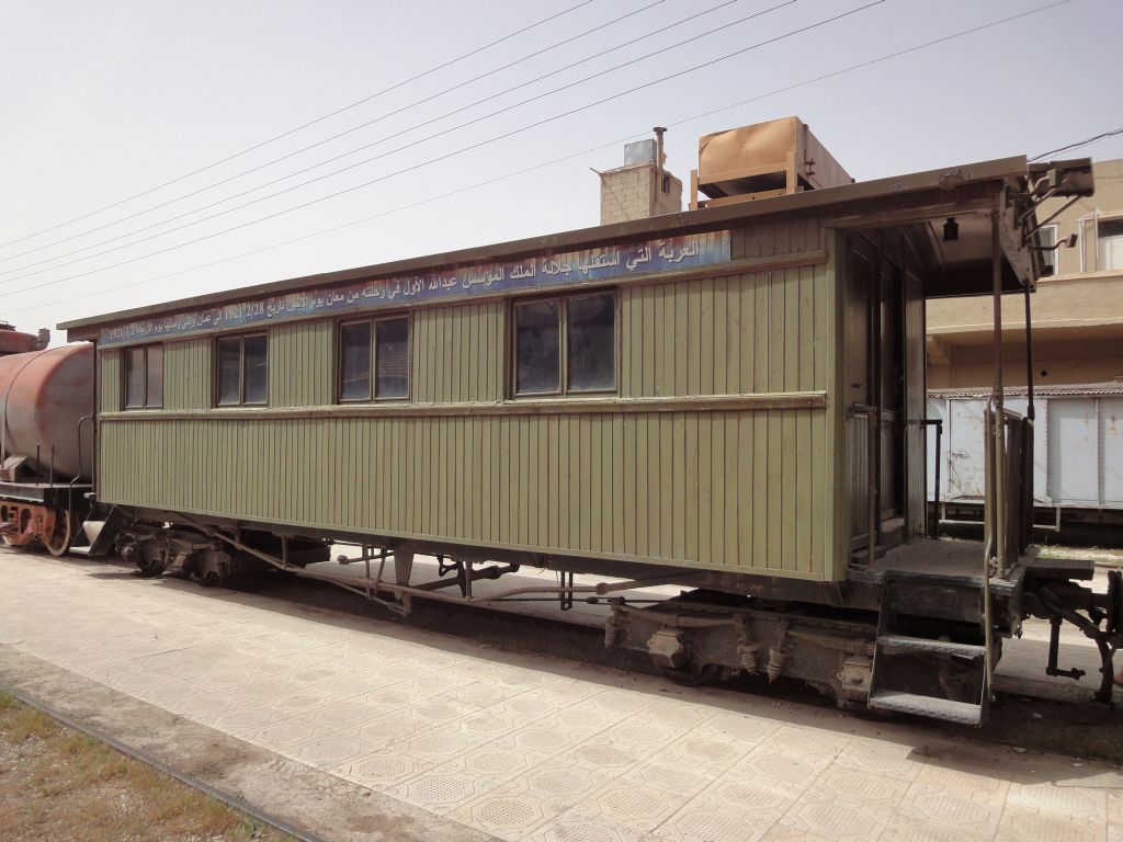 | Jordan 20.9.2008: Our tour of the 1.05m gauge, former Hedjaz Railway, in Jordan and Syria, commenced at Jordan, Amman’s Al Mahata station, seen here little changed from the day it opened in the 1903. The coaching stock of the tour group’s train stands ready, two coaches each, built in the 1900s by the old firms of Roeulx and Baume & Marpent. In front of them is a bogie water tank (Nippon, Japan 1959), carrying an extra supply for the locomotive. Roger Griffiths; roger.griffiths@hotmail.com |