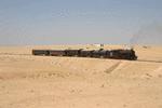 | Jordan 20.9.2008: In a land devoid of all life except a few scrub bushes, frequent evidence that it does rain in the desert – and when it does, IT DOES! Hence the regular piercing of the railway’s embankments by flood-relief culverts, as here, near Deba’a, with 2-8-2 No. 23 (RSH 7433/1952) trundling across. Roger Griffiths; roger.griffiths@hotmail.com |
