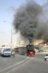 | Jordan 29.9.2008: Approaching the summit station at Qasir, the railway crosses one of Amman’s main dual-carriageway roads on a curving, un-gated level crossing. It took the determined efforts of several policeman and railway staff to convince the impatient motorists that they must stop! The train’s guard waves the all-clear as 2-8-2 No. 71 (HSP 2144/1956) blasts across the road. Roger Griffiths; roger.griffiths@hotmail.com |
