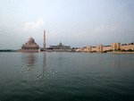 Persiaran Perdana - Putra Bridge, whose span is to accommodate the Monorail line. Background: Putra Mosque and Prime Minister's Office. Putrajaya. 24 September 2011.