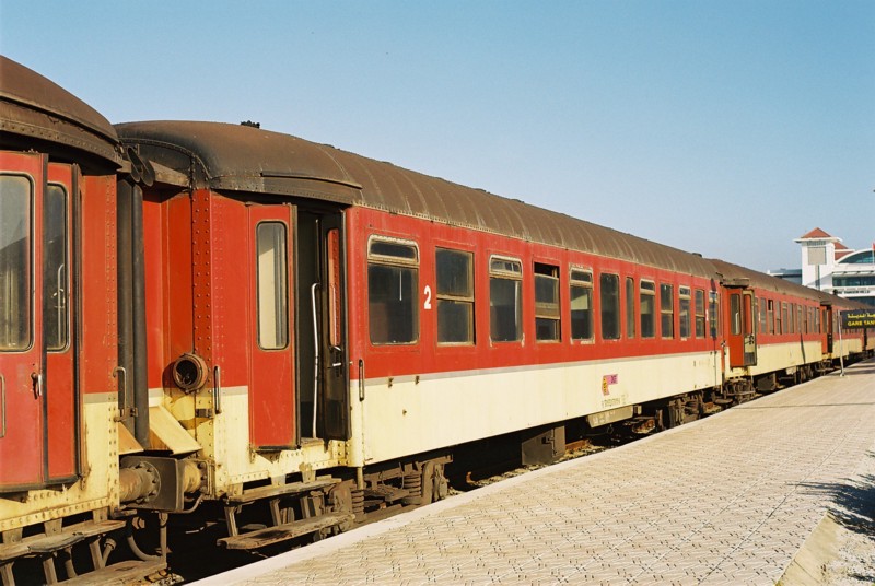 Not purchased 2nd-hand from SNCF, yet Morrocan-built, and would run either as XRB-11 (open-room) or RB-11 (compartments) pre-refurbishment (2008/2009). Train Grandes Lignes Casablanca Voyageurs ---> Fez. Casablanca-Voyageurs 27th March 2010.