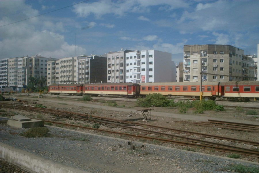 5. Oktober 2003, Casablanca, Marokko Reisezugwagen im Bahnhofsvorfeld von Casa Voyageurs.