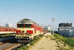 DF 106 with train OT/TL Oujda-Tanger. Sidi-Kacem, 25/04/2005. Photo Jean-Pierre Vergez-Larrouy (jean-pierre.vergez@tele2.fr) |