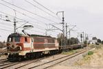 ONCF E-1018 is seen with a local freight train at Sidi El Aïdi junction on the 5th of June 2000. From the 23 locos built by Pafawag and Dolmel of Wroclav, only 12 are actually in service. They are used on local freight trains and for service trains. They are similar to the PKP series ET 22 but have stainless body and are a little bit lower to conform with ONCF gauge.