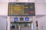 5. Oktober 2003, Bahnhof Rabat Agdal, Marokko Testbetrieb (laut Anzeige) einer neuen elektronischen Fahrplananzeige im Innenraum des Bahnhofs Rabat Agdal.