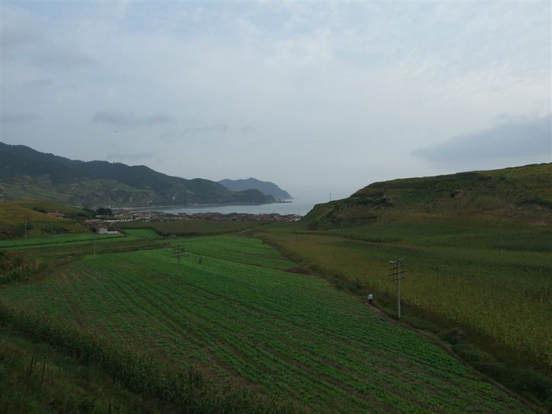 North Korea: Landscape near Tanchon on the main-line Tumangan - Chongjin - Kilchu - Hamhung - Kovon - Sunchon - Pyongyang. Photo taken from train 8 (Tumangan - Pyongyang).